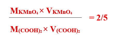 2MnO4 + 5C2O42– + 16H+ → 2Mn2+ + 10CO2 + 8H2O